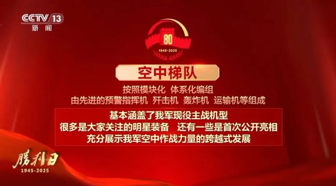 空中梯隊(duì),按照模塊化、體系化編組,由先進(jìn)的預(yù)警指揮機(jī)、殲擊機(jī)、轟炸機(jī)、運(yùn)輸機(jī)等組成,基本涵蓋了我軍現(xiàn)役主戰(zhàn)機(jī)型,很多是大家關(guān)注的明星裝備,還有一些是首次公開(kāi)亮相,充分展示我軍空中作戰(zhàn)力量的跨越式發(fā)展。
