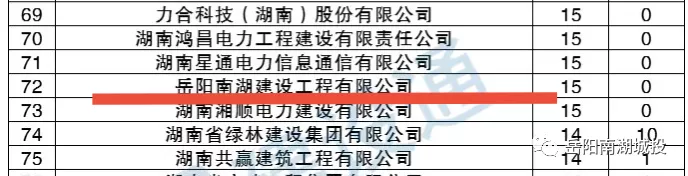 近日,建筑行業(yè)招投標大數(shù)據(jù)服務平臺《建設通》發(fā)布了“湖南第三季度建企中標100強”排名,岳陽南湖建設工程有限公司以第三季度中標數(shù)15個的成績,位居榜單第72位。