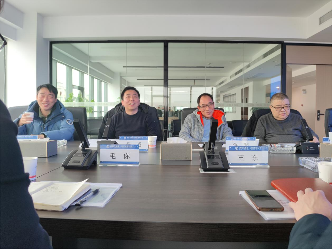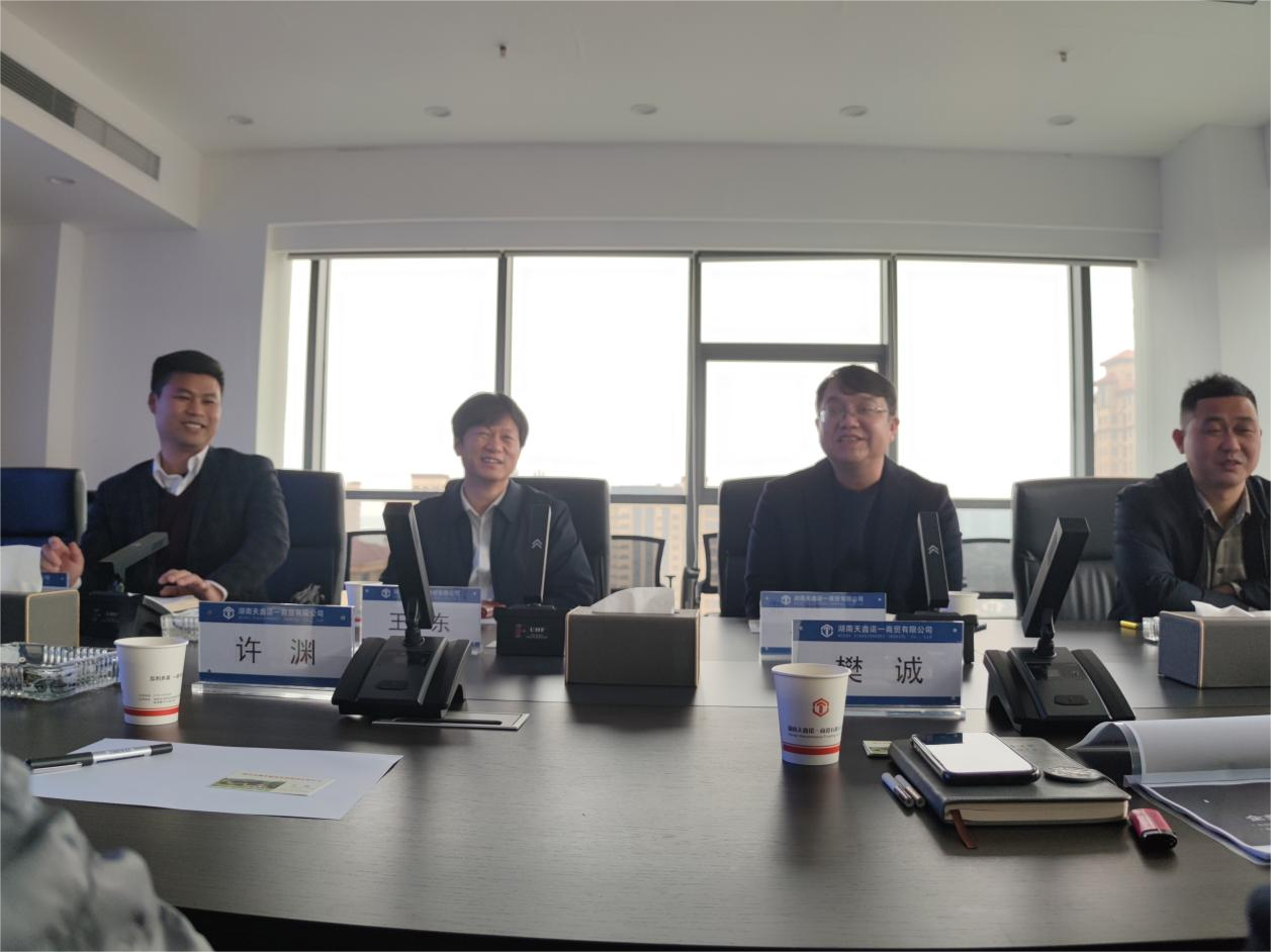 2月17日,韶山市城鄉(xiāng)建設(shè)發(fā)展集團有限公司總經(jīng)理王東攜下屬企業(yè)主要負責人來我司考察交流,天鑫諾一總經(jīng)理李宏主持,董事長許淵、副總經(jīng)理樊誠參加。