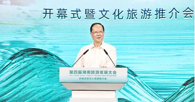 毛偉明在主持時(shí)代表湖南省委、省政府歡迎四方賓朋相聚大美江湖、天下岳陽,共襄第四屆湖南旅游發(fā)展大會盛會。他說,舉辦湖南旅游發(fā)展大會,其目的是深入貫徹習(xí)近平總書記關(guān)于旅游發(fā)展的重要論述,堅(jiān)持以文塑旅、以旅彰文,為全省高質(zhì)量發(fā)展助力賦能。“三湘四水、相約湖南”是湖南秀美風(fēng)光、悠久文化、現(xiàn)代活力、美好愿景的縮影,是心與心的相約,熱忱歡迎海內(nèi)外朋友一起相約湖南,共赴心靈之旅、共沐人文之盛、共享山水之美。