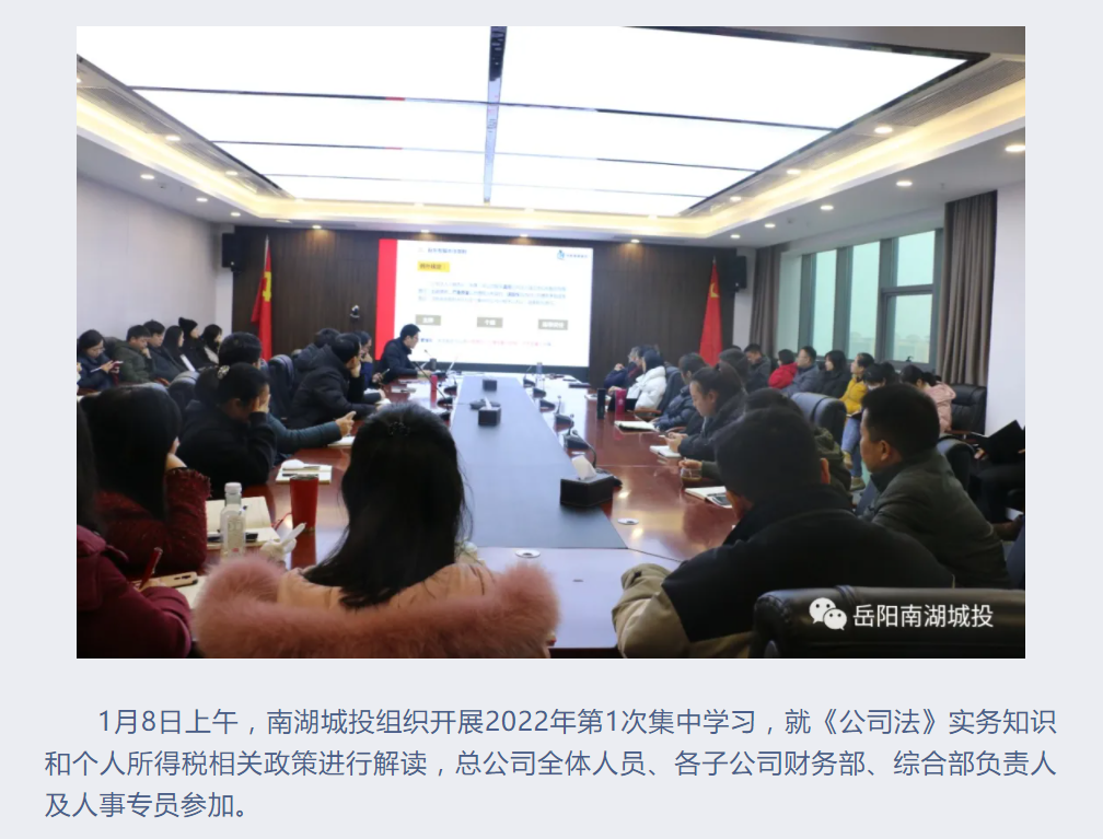 岳陽(yáng)南湖城市建設(shè)投資有限公司組織開(kāi)展2022年第1次集中學(xué)習(xí)