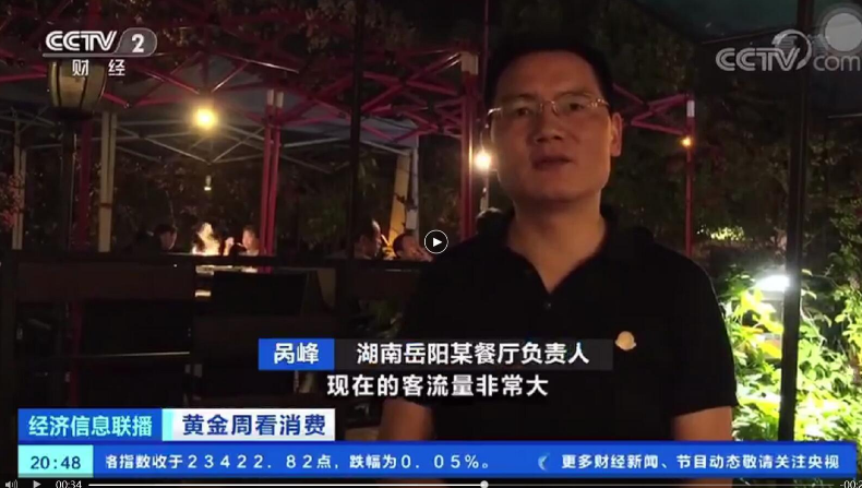 岳陽(yáng)某餐廳負(fù)責(zé)人 咼峰:現(xiàn)在的客流量非常大,不管是中午還是晚上,基本上都是滿座的,后面幾天的預(yù)定都非常不錯(cuò),已經(jīng)預(yù)定了八九成了。